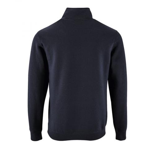 Мужской свитшот с начесом и воротником-стойкой на молнии. Манжеты и низ изделия обработаны резинкой. Внутренняя планка контрастного цвета. Лейбл с размером находится во шве горловины, лейбл производителя вшит в боковом шве изнутри.