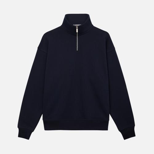 Универсальная толстовка с воротником-стойкой и заниженной линией плеча. По нижнему краю и на рукавах — эластичные резинки для комфортной и аккуратной посадки. Модель застёгивается на металлическую молнию.