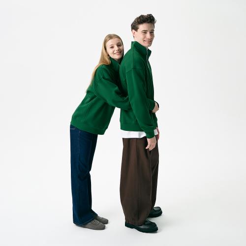 Универсальная толстовка с воротником-стойкой и заниженной линией плеча. По нижнему краю и на рукавах — эластичные резинки для комфортной и аккуратной посадки. Модель застёгивается на металлическую молнию.