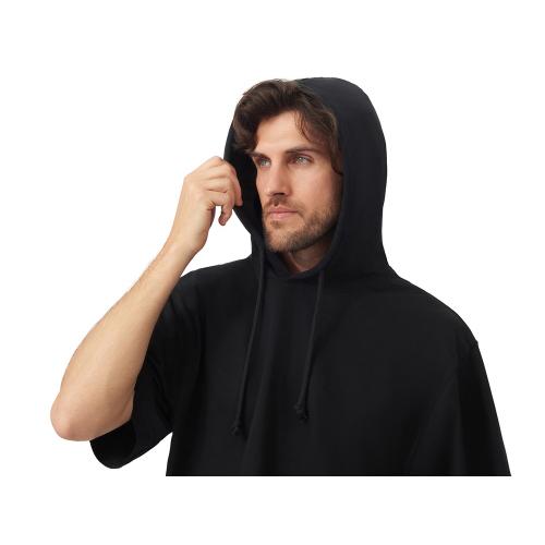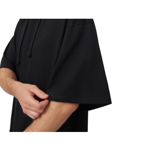 Худи с коротким рукавом выполнено из хлопкового френч терри с петельками на изнаночной стороне. Подкладка капюшона выполнена из основного полотна для объемной посадки. Модель комфортной и актуальной посадки оверсайз отлично подходит для обычной жизни и в качестве промо мерча. - оверсайз посадка - низ обработан рибом 2х2 и дополнительно отстрочен для укрепления - мягкое и качественное полотно френч терри - увеличенная зона для нанесения из-за отсутствия кармана
