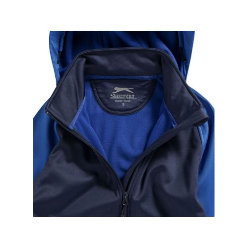 Женская куртка софтшел Challenger. Стандартный покрой. Водонепроницаемая куртка Софт Шел. Дышащий. Отстегивающийся капюшон. Регулируемые манжеты на липучках. Завязки со стопперами внизу. Передний карман и карман на рукаве на обратных молниях. Сзади длиннее чем спереди. Принт Slazenger на шве слева. Однослойная джерси гладкого переплетения из 100% полиэстера, склеенного со 100% микрофлисом. 360 г/м².