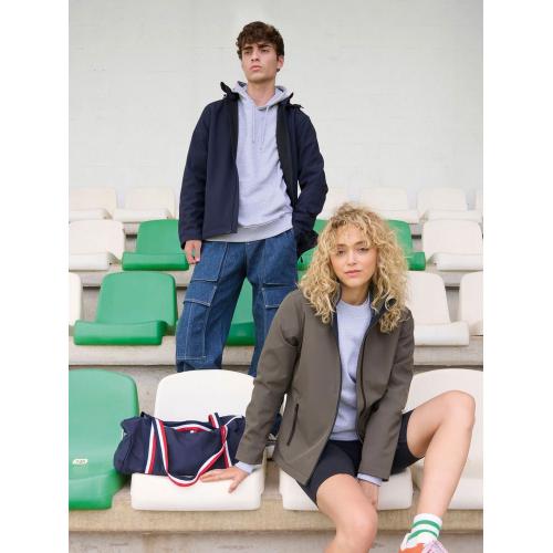 Мужская куртка софтшелл на молнии и с капюшоном.