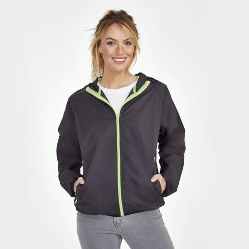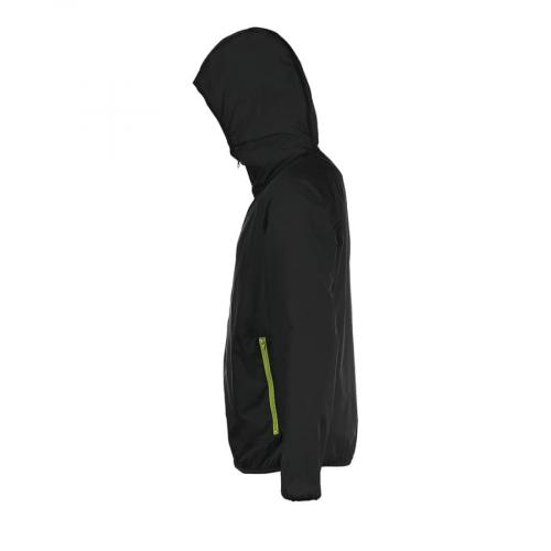 Легкая и компактная ветровка унисекс SHORE из водоотталкивающего и ветрозащитного материала. Два боковых кармана на молнии. Рукава реглан. Манжеты, капюшон и низ ветровки на эластичной тесьме. Молнии ветровки контрастного цвета. Складывается ветровка в свой карман на молнии. Цвет близкий к PANTONE 200С