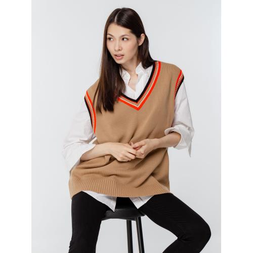 Оверсайз жилет с V-образным вырезом и цветной отделкой.