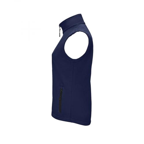 Женский жилет из материала софтшелл с водоотталкивающими свойствами (вода скатывается c поверхности ткани). Флис с внутренней стороны изделия сохраняет тепло. Два кармана на молнии с подкладкой "сетка" для большей вентилируемости.