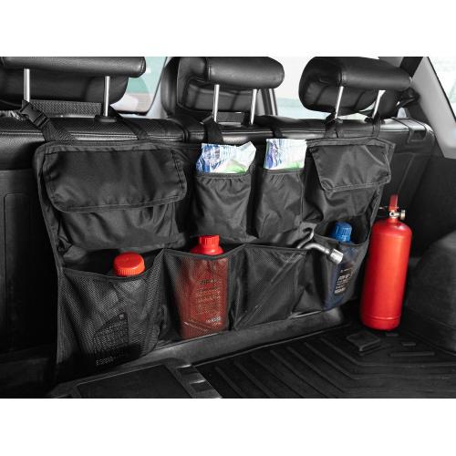 В органайзере имеются разные по форме и типу карманы: карманы-сетки, карманы с крышкой на липучке, открытые карманы.Конструкция крепится ремнями за подголовники задних сидений. Дополнительно на задней части органайзера имеются ленты-липучки, которые обеспечивают полное прилегание органайзера к спинкам задних кресел.