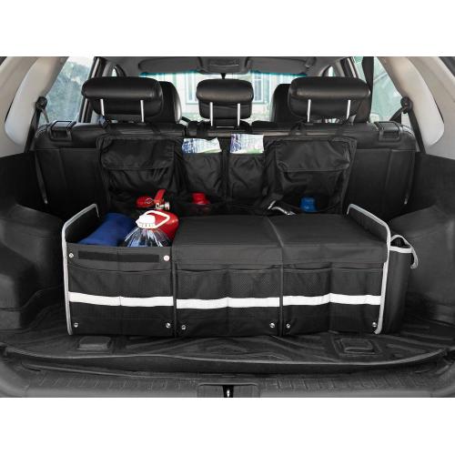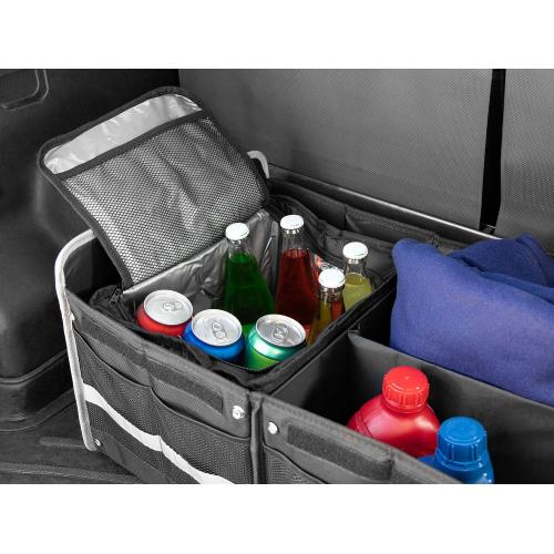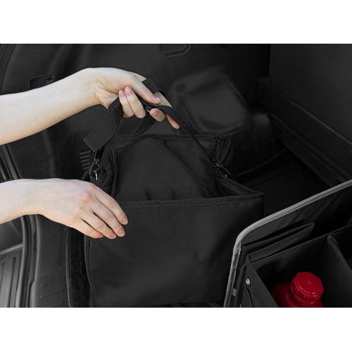 Органайзер состоит из трех основных отсеков, бокового кармана с клапаном и фронтальных карманов из сетки, что позволяет удобно хранить самые разные предметы: бутылки, сумки, инструменты, продукты и аксессуары. Также в комплект входит сумка-холодильник с водонепроницаемой подкладкой, которую можно вставить в одно из отделений, использовать отдельно, или сложить и убрать в боковой карман органайзера, когда она не нужна.