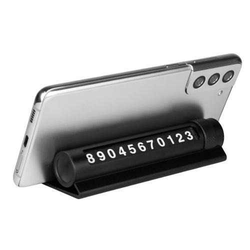 Парковочная табличка идеально подойдет для того, чтобы сообщить о вашем номере телефона водителям, которым может помешать автомобиль. Оборудована поворотным механизмом, что позволяет открыть/закрыть номер за секунду. Съемные магнитные цифры поставляются в комплекте, надежно крепятся на панели и не боятся тряски. При этом обратная сторона парковочной таблички выполняет функции подставки для телефона, который можно удобно установить на приборной панели. Для надежной фиксации в комплект приложены клеевые крепления. - выполнена из металла: долговечная, не боится перепадов температур - удобный поворотный механизм - магнитные цифры фиксируются на панели и не рассыпаются от тряски - подставка для телефона - клеевые крепления