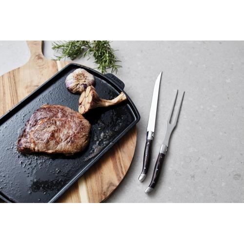Набор Gigaro, состоящий из вилки и ножа для стейка, поможет создать на вашей кухне атмосферу французского бистро. Изящные нож и вилка изготовлены из нержавеющей стали и паккавуда. Паккавуд — это материал, состоящий из древесины ценных пород и смолы. Так называемая ламинированная древесина получается очень прочной и долговечной, не скользит в руке, не впитывает запахи и не поддается влаге.