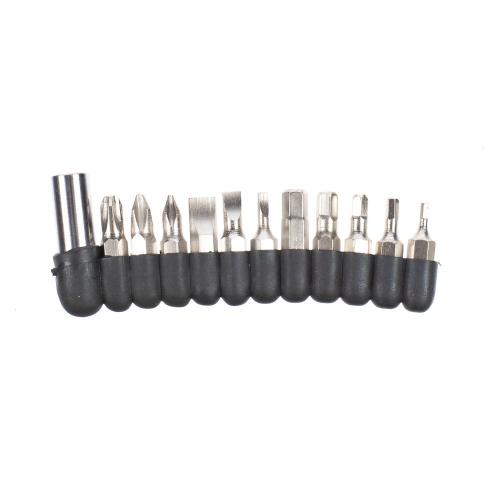 В комплекте мультитул, чехол и набор из 12 съемных бит.