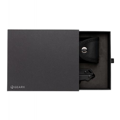 Сила и мощь — эти слова лучше всего описывают инструмент бренда Gear X. Это самый универсальный и надежный инструмент для ежедневной работы как дома, так и на природе. Стильный черный корпус из алюминия идеально сочетается с инструментами из высококачественной нержавеющей стали 420 черного цвета. Инструменты Gear X рассчитаны на долгий срок службы. 13 функций: нож (с замком), напильник, пила, большая шлицевая отвертка (с замком), отвертка Philips, шлицевая отвертка, пассатижи, стандартные плоскогубцы, кусачки, открывалка для бутылок, отвертка, нож для автомобильного ремня безопасности, нож для коробок. Уровень твердости инструментов 40-45 HRC. Мультитул с пассатижами Gear X будет всегда под рукой и в любой момент готов к использованию. Поставляется в стильной подарочной коробке.