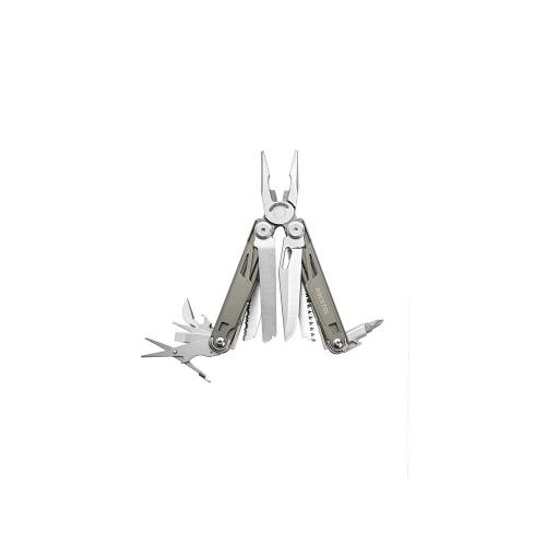 Многофункциональные плоскогубцы: Этот многофункциональный инструмент EDC оснащен инструментами с титановой ручкой, которые доступны в сложенном положении, включая зазубренный веревочный нож, карманный нож, пилу, напильники по дереву и металлу, а также другими функциями, такими как устройство для снятия изоляции, кусачки для жесткой и обычной проволоки, обычные плоскогубцы, плоскогубцы с игольчатым наконечником, обжимные плоскогубцы, открывалки для банок и бутылок, линейки для разметки, пружинящие ножницы, шлицевая и крестообразная отвертки, большая шлицевая отвертка, отвертка для очков.
