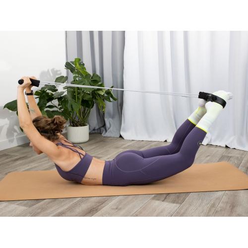 Лицевая сторона выполнена из пробки — экологичного, теплого и приятного на ощупь материала, а обратная из ТПЭ — термопластичного эластомера, который гарантирует надежное сцепление коврика с поверхностью.