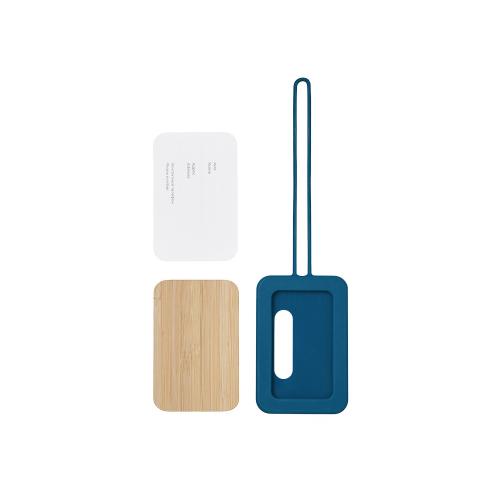 Бамбуковая багажная бирка с силиконовым чехлом Тагу, темно-синий, артикул 685716