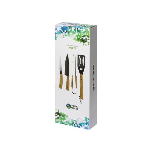 Набор Ribeye включает в себя инструменты, облегчающие приготовление блюд барбекю на природе: нож, большая двузубая вилка, спатула — она же удобная лопатка, и щипцы. С ними готовить мясо, рыбу и овощи на гриле станет еще приятнее.