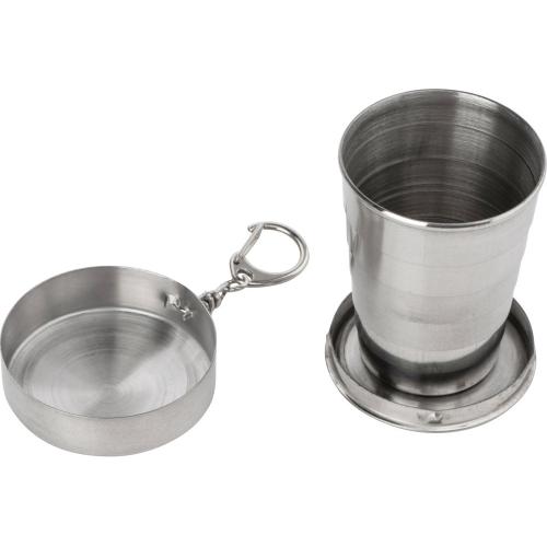 Удобство использования: В комплект входят два складных стаканчика по 60 мл, также выполненных из нержавеющей стали. Они надежно крепятся к фляге с помощью ремешков на кнопках, что позволяет всегда иметь их под рукой.
