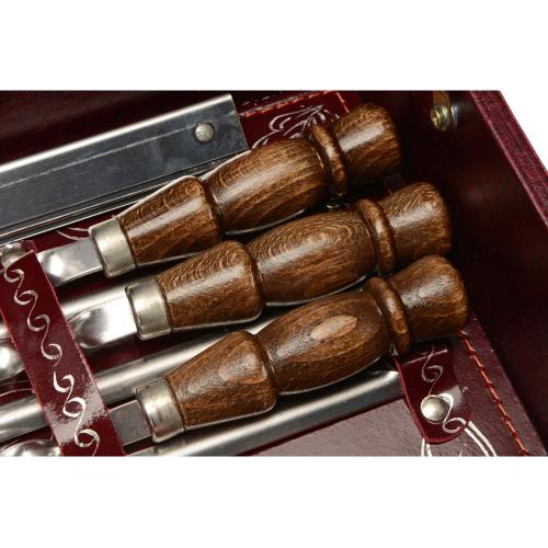 Кейс из сплит-кожи, с повышенной износостойкостью, внутренняя отделка натуральная кожа с художественным выжиганием.