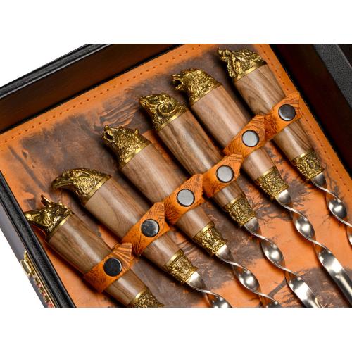 Шампура 670 мм (нерж. сталь) ручка орех, бронзовое литье– 6 шт.