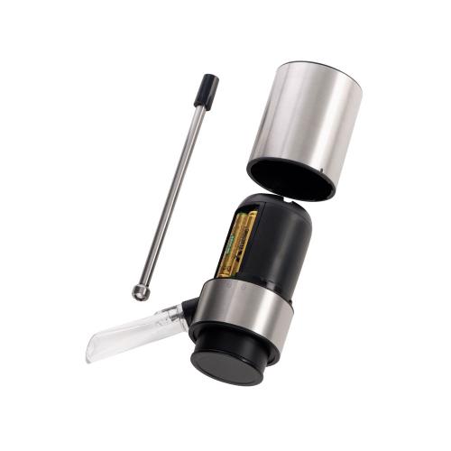 Автоматический аэратор от Master of Wine разливает вино по бокалам необычным образом: вам просто нужно установить его на горлышке бутылки и нажать на кнопку, и из трубки аэратора польется насыщенное кислородом вино.