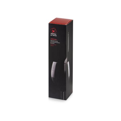 Электрический штопор RIOJA бренда Master of Wine — прекрасный подарок любителю вина: эта модель поставляется в элегантной упаковке в комплекте с подставкой, которая также может выступать в роли ножа для фольги. Благодаря устойчивой и функциональной подставке штопор всегда будет под рукой, а внешний вид Rioja станет настоящим украшением барной стойки или кухни.