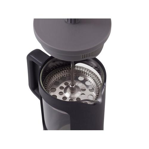 Сдержанная гармония черного и серого в пластиковом корпусе делает этот френч-пресс стильным акцентом любой кухни.