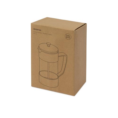 Френч-пресс Intense - незаменимый кухонный прибор, который подойдет для использования не только дома, но и в офисе. Легкость заваривания напитков во френч-прессе является отличным преимуществом при выборе корпоративного подарка в данной категории. - корпус из прочного пластика, емкость из жаропрочного боросиликатного стекла, устойчивого к перепадам температур - объема в 600 мл хватит минимум на 2 чашки кофе или чая - максимально рекомендованная температура воды - 120℃ - можно использовать в посудомоечной машине - не разрешается разогревать в СВЧ - значительная площадь для нанесения
