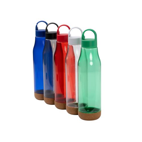 Бутылка с пластиковым корпусом и пробковым дном. Ручка для переноски с карабином на крышке. Объем: 720 мл. Упаковка: эко-дизайн.