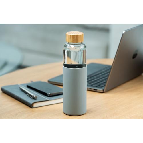 Мягкий силиконовый чехол приятно ложится в руку и защищает бутылку от случайных ударов или соскальзываний. Крышка из натурального бамбука — это природный штрих, который делает бутылку не просто функциональной, а вдохновляющей. Надежное завинчивающееся крепление предотвращает проливание воды.