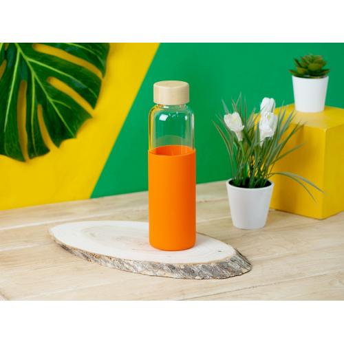 Стильная бутылка для воды сразу привлечет внимание к себе, где бы Вы ее ни достали, так как представляет собой идеальную композицию из трех экологичных материалов. Бутылка выполнена из качественного боросиликатного стекла, поэтому абсолютно не влияет на вкус и запах напитков. Силиконовый чехол поможет защитить бутылку от повреждений и легких падений, также чехол выполняет анти-скользящую функцию. Крышка выполнена из натурального бамбука. Не замораживайте и не используйте бутылку в микроволновке. Бутылка легко моется. Объем 550мл.