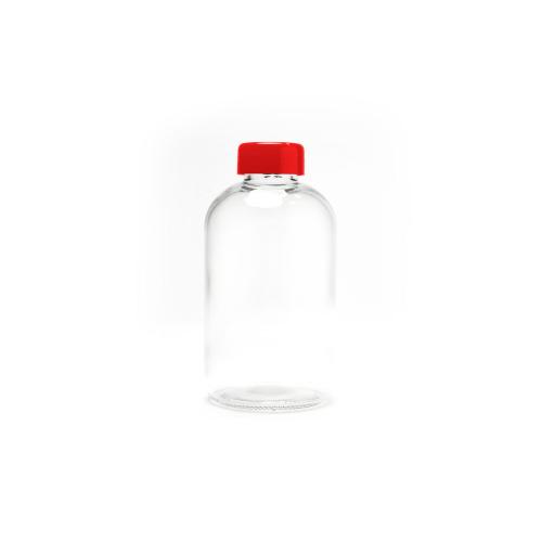 Стеклянная бутылка емкостью 600 мл. включает инновационный неопреновый чехол самых разных цветов с ручкой для переноски.