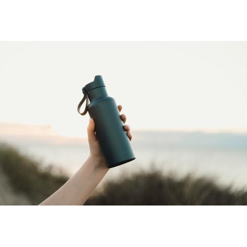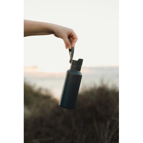 Комфорта добавляет и ремешок в тон: за него можно подвесить бутылку к рюкзаку, ремню или носить в руках, не опасаясь ее выронить.