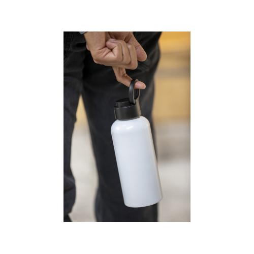 Бутылка для воды из переработанного алюминия, сертифицированного согласно RCS, с элегантным дизайном. Имеет крышку из переработанного пластика с отдельной петлей для переноски. Легкая и удобная для переноски. Объем: 600 мл. Recycled Aluminium, Recycled PP Plastic.