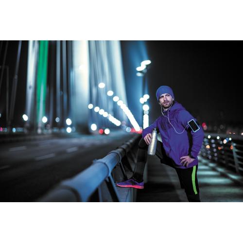 Эту вакуумную бутылку легко брать с собой и не переживать, что содержимое разольется. Благодаря светоотражающему покрытию 360° вас будет хорошо видно даже ночью. Бутылка позволяет сохранять температуру холодных напитков до 15 часов и горячих до 5 часов. Объем 500 мл. Не содержит BPA.