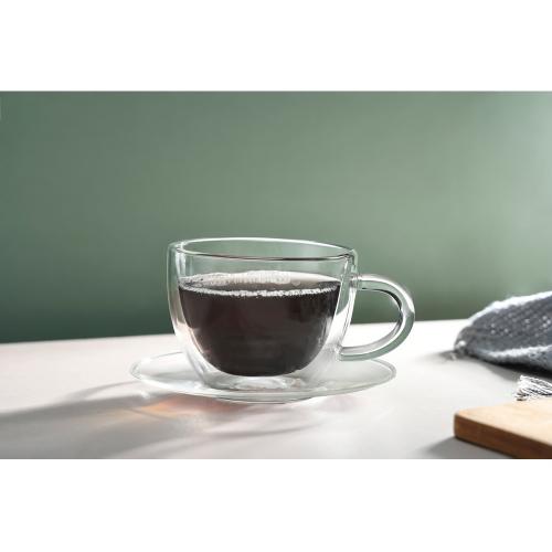 Изысканная чайная пара Rio – это гармоничное сочетание стиля и функциональности. Чашка с двойными стенками идеально подходит для наслаждения горячими и холодными напитками, а элегантное блюдце дополняет комплект, придавая ему особый шарм.