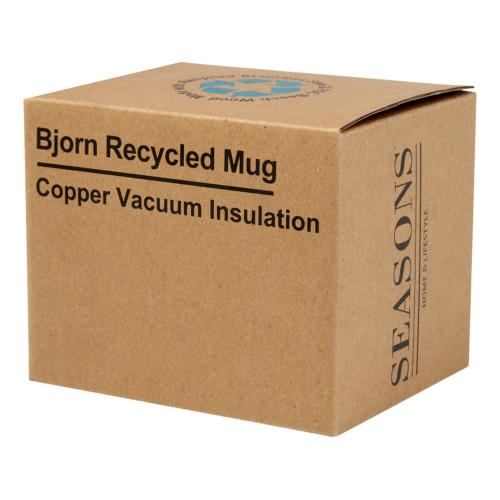Кружка Bjorn изготовлена из переработанной нержавеющей стали, сертифицированной по стандарту RCS, а ручка изготовлена из древесины бука, полученной из ответственных источников. Медная вакуумная изоляция в кружке помогает поддерживать идеальную температуру напитков в течение длительного периода времени. Эта кружка является отличной альтернативой обычным кружкам и предназначена для предотвращения передачи тепла наружу. Протестировано и одобрено согласно немецкому законодательству о безопасности пищевых продуктов (LFGB) и проверено на содержание фталатов согласно нормам REACH. Емкость: 360 мл. Не содержит БФА.