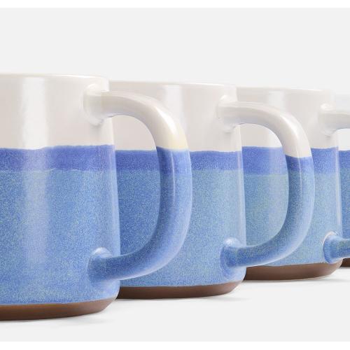 Нижняя половина кружки покрыта реактивной глазурью — особым видом керамического покрытия, компоненты которого вступают в химическую реакцию во время обжига при температуре 1200°C и выше. Из-за непредсказуемого взаимодействия компонентов создаются уникальные переливы, узоры и текстуры, поэтому в партии невозможно найти два абсолютно одинаковых изделия.
