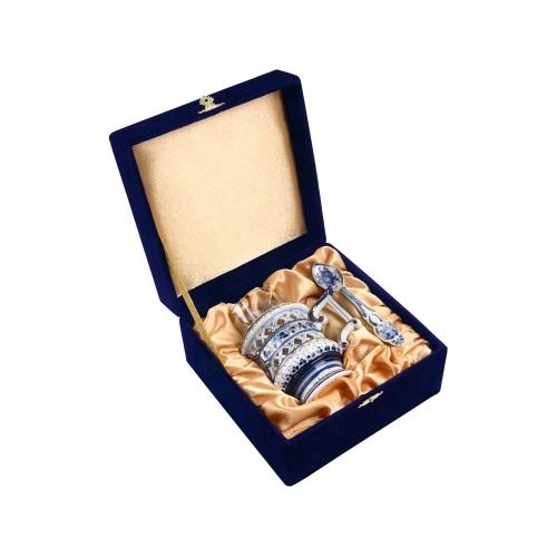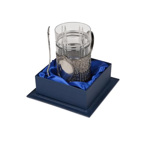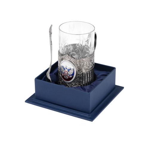 Подстаканник с хрустальным стаканом и ложкой РОССИЙСКИЙ-М