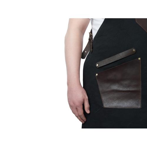 - Эстетика и стиль: Черный цвет фартука в сочетании с коричневыми кожаными элементами создает стильный и современный образ. Этот фартук подойдет как для профессиональной, так и для домашней кухни, а также для барбекю и других активных хобби.