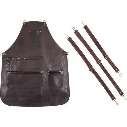 Погрузитесь в мир стиля и практичности с нашим фартуком из натуральной кожи КРС. Темно-коричневый цвет фартука в сочетании с коричневыми ремнями создает ощущение роскоши и тепла, делая его незаменимым для каждого, кто ценит качество и элегантность.