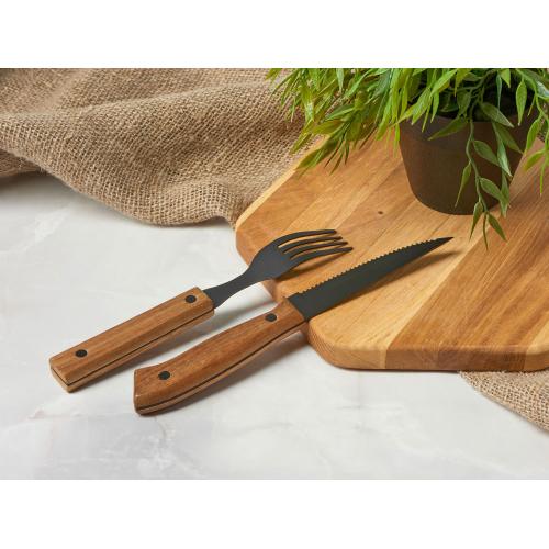 Набор приборов для стейка от бренда Tour de Grass выполнен из нержавеющей стали, обеспечивающей качество вилок и ножей в комплекте, а ручки приборов — из акации, которая также славится своей прочностью и долговечностью и точно не даст обжечься. Древесина акации устойчива к растрескиванию и не боится контактов с пищей.