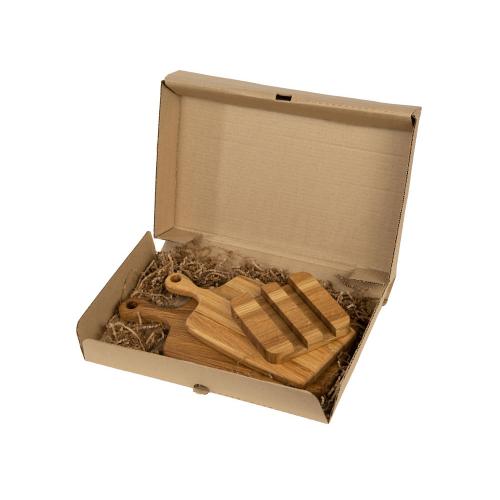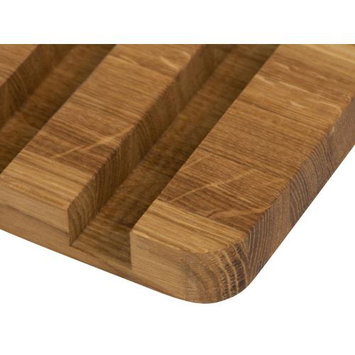 Набор от Eat&Bite состоит из двух разделочных досок из натурального дуба, а также подставки для них. Доски обработаны пищевым маслом, которое не дает древесине растрескаться и помогает поддерживать свежий вид.