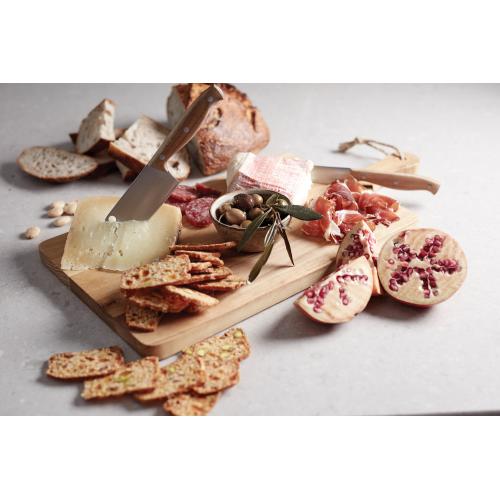 Стильная доска украсит любую кухню. Большая площадь позволяет использовать ее и как разделочную, и как сервировочную. Изготовлена из натурального тика, сертифицированного FSC, древесина которого со временем темнеет и становится еще красивее. Высокое содержание масла защищает доску от влаги.
