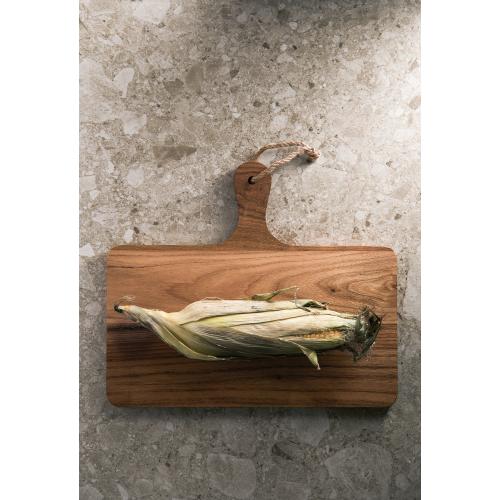 Добавьте обычному ужину ресторанного шика: подайте закуски или стейк на широкой сервировочной доске из дерева. Изготовленная из сертифицированного FSC® тика доска весит почти килограмм: она тяжелая, основательная и при этом не теряет очарования натурального дерева. Доска обработана не имеющим запаха маслом, благодаря чему не боится влаги и не дает размножаться бактериям. Древесина тика темнеет со временем, что придает доске еще более эффектный вид.