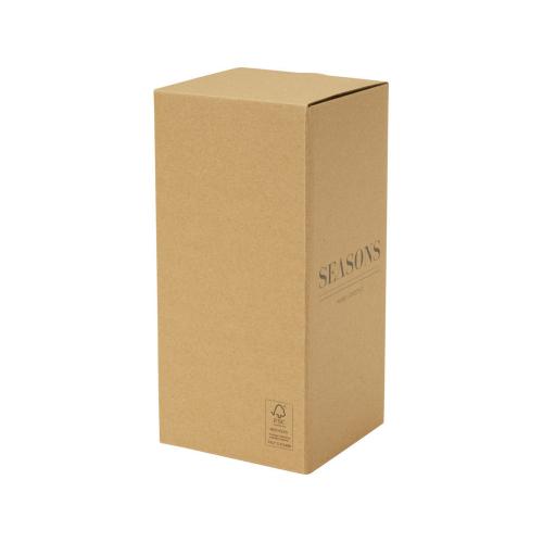 Большой пищевой контейнер из стекла с бамбуковой крышкой. Он сочетает в себе преимущества стекла, которое является безопасным и прочным материалом, с возобновляемыми свойствами бамбука. Стеклянный контейнер (без крышки) можно использовать в микроволновой печи и посудомоечной машине. Упакован в коробку из крафт-бумаги вторичной переработки. Емкость: 940 мл.