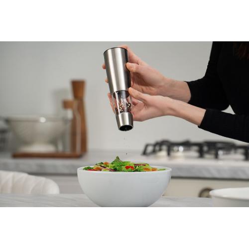 Быстро и без усилий измельчить соль и специи поможет мощная мельница Molle. Она оснащена встроенным литиевым аккумулятором и портом USB для зарядки. Нажмите кнопку один раз, чтобы включить питание, мельница перейдет в режим ожидания. Наклоните ее, и она начнет работу. Повторное нажатие на кнопку приведет к выключению устройства.