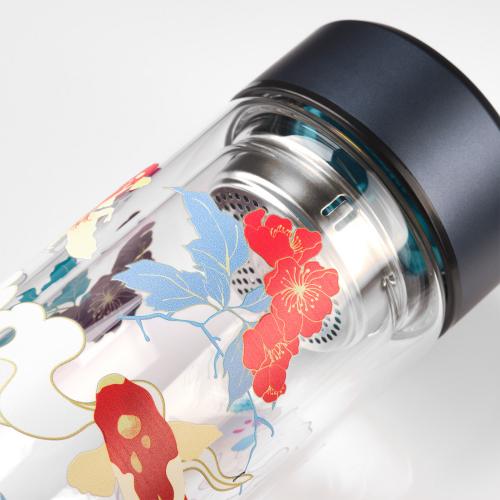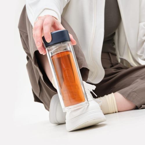 Стеклянная бутылка с двойными стенками позволит носить свежезаваренный чай с собой. Ситечко позволит заварить чай прямо в бутылке.