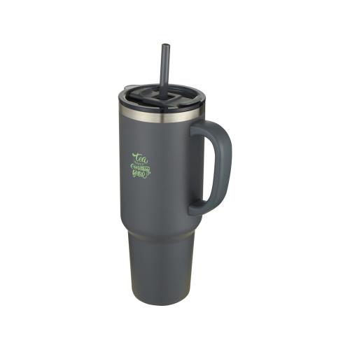 Кружка с двойными стенками из меди, сертифицированной RCS, и вакуумной изоляцией, изготовлена из нержавеющей стали, 91% которой подверглось вторичной переработке, сохраняет напитки холодными в течение как минимум 24 часов. Имеет соломинку Tritan и функцию слайдера крышки для предотвращения проливания. Прижимная поворотная крышка из 100% переработанного пластика надежно удерживает соломинку на месте и может легко поворачиваться, открывая отверстие для напитка. Прочное внешнее порошковое покрытие. Объем: 1200 мл. Только ручная мойка. Recycled stainless steel.