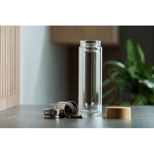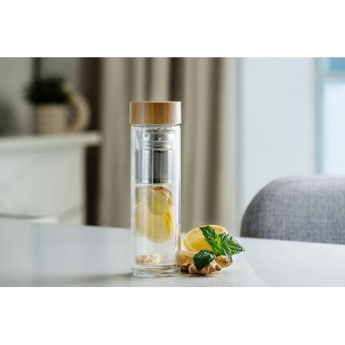 Удобная бутылка среднего объема для заваривания чая, кофе или трав горячим или холодным способом. Двойные стенки не дадут обжечься, если содержимое бутылки окажется слишком горячим, а также помогут дольше сохранить температуру напитка.