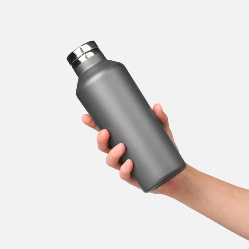 Корпус бутылки выполнен из двухслойной высоколегированной стали 304 марки с порошковым покрытием делает бутылку устойчивой к мелким царапинам. Крышка сделана из металла (пластик BPA free внутри).