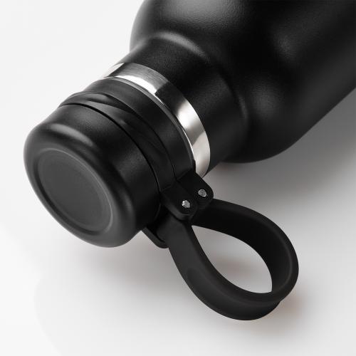 Вакуумная герметичная конструкция выполнена из двухслойной высоколегированной стали 304 марки, что делает конструкцию более прочной и устойчивой к мелким сколам и царапинам. Крышка из высококачественного пластика, оснащена удобной силиконовой петелькой для переноски. Бутылку можно переворачивать и класть в сумку.